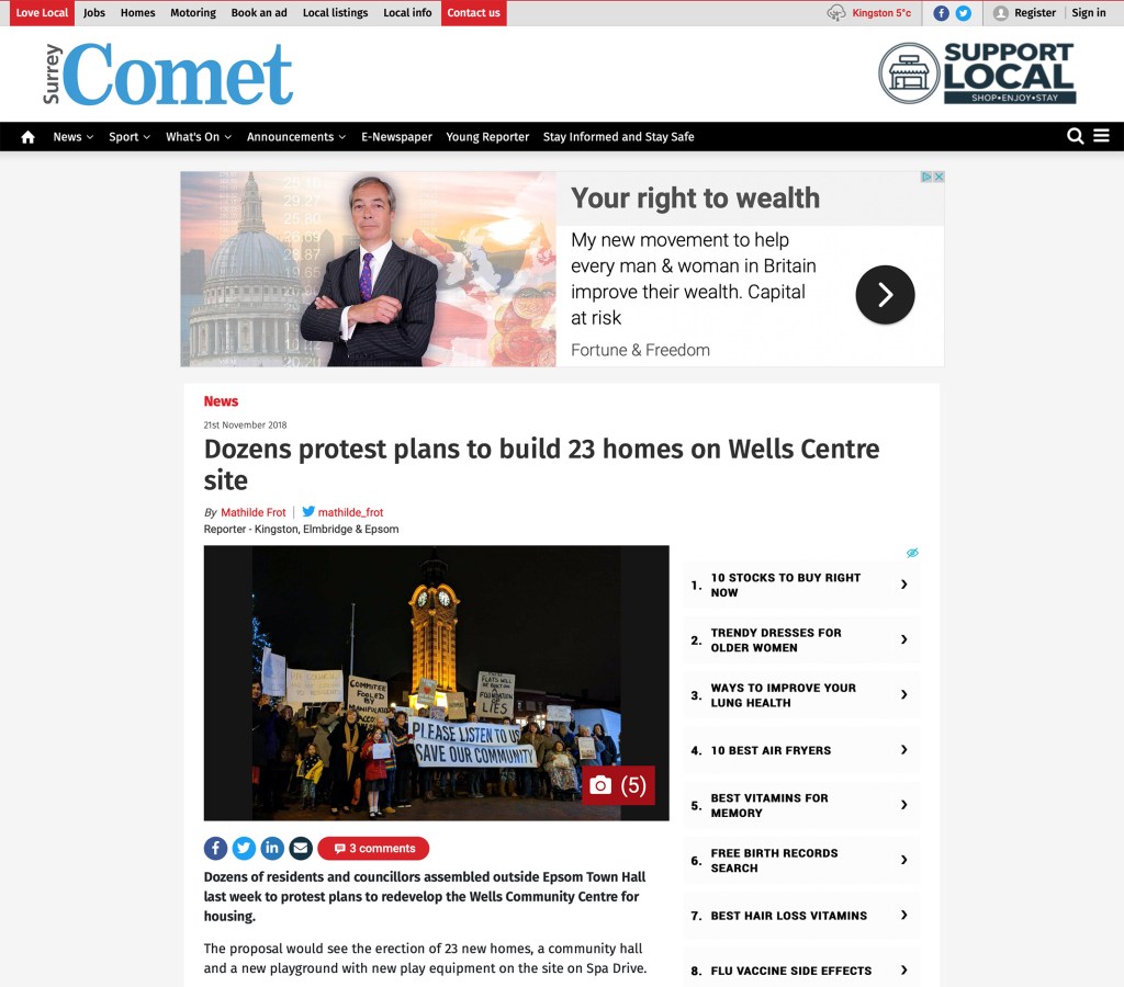 - https://www.surreycomet.co.uk/news/17238711.dozens-protest-plans-build-23-homes-wells-centre-site/