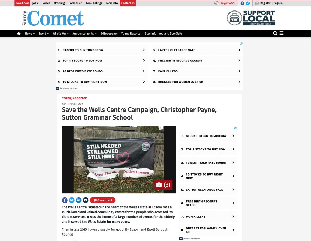- https://www.surreycomet.co.uk/youngreporter/18873067.save-wells-centre-campaign-christopher-payne-sutton-grammar-school/
