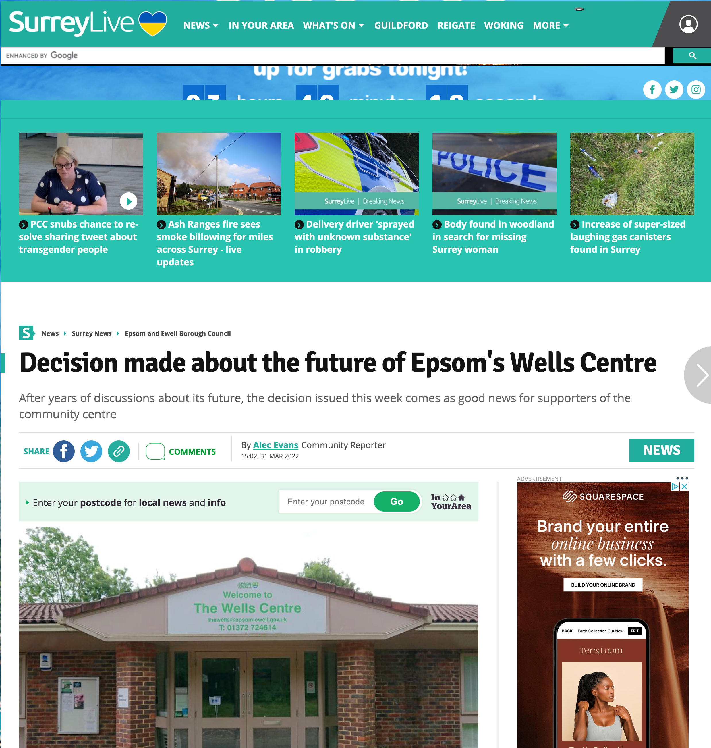 At the recent Epsom and Ewell Borough Council (EEBC) Strategy & Resources meeting, councillors voted unanimously to grant Epsom Wells Community Association (EWCA) a long term lease of the Wells Centre building and land.
